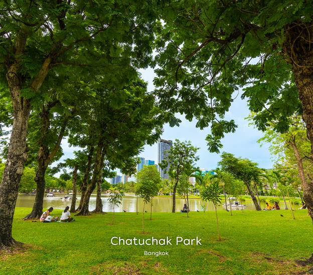 Di bagian utara Bangkok, terdapat tiga taman besar yang saling terhubung: Chatuchak Park, Queen Sirikit Park, dan Wachirabenchathat (Rot Fai) Park. Area ini ideal untuk Anda yang ingin piknik santai, bersepeda jarak jauh, atau mengunjungi Butterfly Garden & Insectarium.